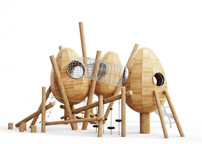 Доступный строительный материал с высокой смолистостью, обеспечивающий дополнительную защиту от внешних воздействий, как и лиственница. Сосна сочетает прочность с естественной эстетикой, поэтому подходит для создания частных и общественных игровых зон, гармонируя с природным ландшафтом. Деревянные детали из сосны также отличаются гладкостью и приятны на ощупь